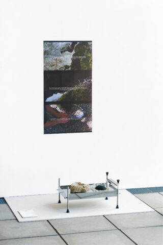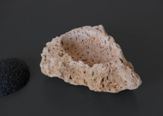 »Fragments of mining« is a collection of the fragments of quarrying, derived from the different potentials found in the three major sedimentary layers of the Swabian Jura; I.Lias, II.Dogger and III.Malm. For each layer a separate working part was developed. The first part resulted in an installation consisting of naturally fractured stone, whose objects located between furniture and sculpture were assembled with the help of metal clamps. The second part of the work is about stone working by human beings and the tools they need to gain knowledge and experience about the stone. The tools are made entirely from the raw materials of the Dogger and refer to the connection between geology and the resulting industries of the region. The third part is about an utopia based on the natural phenomenon of karst stone growth. For this purpose, an experimental setup was designed as an outlook to be able to grow stone objects in the future through a device in the water, on which limestone deposits on a structured form. The resulting objects are supposed to be added back to the cycle after usage. The three-part work contributes to the transfer of knowledge and serves as an impulse for a way of working in design that deals with the relevant discourses on the resources of nature in it’s own environment and it’s ecosystem.