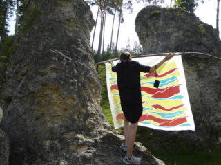 sind alltäglich stattfindende Handlungen mit Textilien. Auf Schutzbedürfnisse wie Kälte, Wärme oder Nässe ausgelegt gibt es Nahtstellen zwischen Innen und Außen. Durch diese Hüllen findet ein ständiger Austausch statt, mit denen wir unsere Umgebung erfahren. Bei dem Projekt entsteht ein textiles Equipment, das den Menschen in der Landschaft begleitet und umhüllt. Die textile Kollektion beinhaltet Elemente für die Mode, mit beweglichen Objekten und Gegenstände für den Raum. Es werden individuelle textile Formen entwickelt, die durch Haptik oder Optik die Fähigkeit haben Schutzfunktionen zu erfüllen.