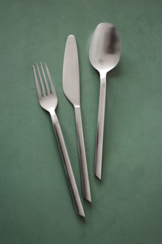 Eine Neuausrichtung des Konzeptes zielte nun in Richtung organischer, von Schnittblumen inspirierter Formen. Die Umsetzung soll jedoch in stilisierter und reduzierter Form erfolgen. Funktionale Aspekte werden vorallem beim Messer eingebracht – die Klinge soll sowohl beim Schneiden als auch Streichen auf einem Großteil ihrer Länge einsetzbar sein. Hierzu verläuft die Klinge auf der Schneidenseite weitgehend gerade und in einem ungewöhnlich großen Winkel zum Griff. So kann das Messer in komfortablem Abstand beispielweise zum Tellerrand geführt werden. Die grafische Untersuchung und Stilisierung von Blüten und deren Übertragung auf die Laffe von Gabel und Löffel bilden den Ausgangspunkt für die Entwicklung organisch anmutender Formen die durch ihre Abstraktheit eine Eigenständigkeit und Allgemeingültigkeit erhalten ohne sich mit floralen Assoziationen zu sehr aufzudrängen.