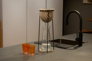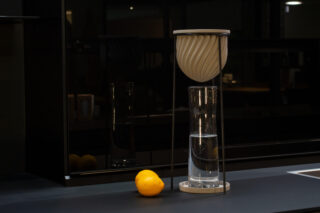PUR TAP is a water purifier made of bio materials for daily use. It removes residues of heavy metals and chemicals from tap water to make the CO2 emissions caused by plastic bottles unnecessary. The slip-casted filter is made out of clay and charcoal. When fired, the charcoal burns out and leaves fine pores that are also able to filter bacteria and viruses. As the water needs to go through the surface in order to get filtered, we increased the surface 75% to accelerate the process. The filter is able to purify up to 700ml per hour.