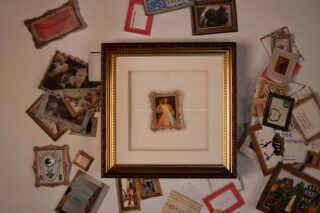 Einmal selber Kurator sein! Mit dieser Mini-Gallerie in Schachtel-Form kannst du aus vielen gerahmten Fundstücken eine Ausstellungswand zusammenstellen und diese im Rahmen an die Wand hängen.