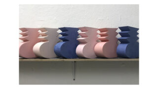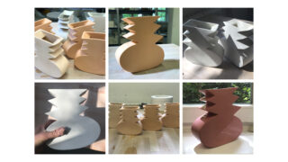 Zigzag Vase handgegossen aus Porzellan mit verschiedenen Farbpigmentierungen und Farbabstufungen.