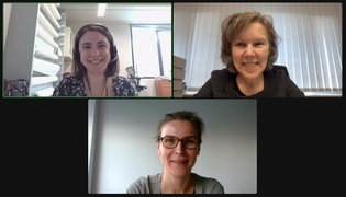 February 20, 2023: Irene Brückle and Ute Henniges from the Stuttgart Academy’s paper conservation programme meet with Sophie Barbisan from the St. Louis Art Museum. For July 2023, Sophie is invited to speak about her work as associate paper conservator at the museum in a digital meeting with the Academy’s paper conservation students. Sophie (upper left), Irene (upper right) and Ute (lower center) are also discussing common research interests.