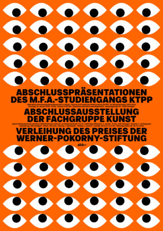 Herzliche Einladung zu den öffentlichen Abschlusspräsentationen des M.F.A.-Studiengangs Körper, Theorie und Poetik des Performativen (KTPP) und zur Ausstellung der Abschlussarbeiten Diplom Bildende Kunst und M.Ed. Künstlerisches Lehramt im Wintersemester 2023/2024 sowie zur Verleihung des Preises der Werner-Pokorny-Stiftung.