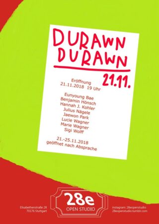 Die Schau-Galerie/Projektraum „28e Open Studio“ ist ein temporärer Veranstaltungsort, der von den Akademie-Studierenden Hannah J. Kohler und Benjamin Hönsch gegründet wurde. Ausstellungen, Performance-Abende, Lesungen und anderes finden dort bis zum Jahresende statt und geben Raum für die Entstehung von Kunst und Diskurs.