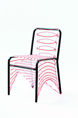 Die ausgestellten Arbeiten stehen stellvertretend für die Untersuchung der Schnittstellen von Materialität, Stofflichkeit, aktuellen Modetrends und Zeitgeist, die sich im Dialog zwischen experimentellen Möbelbezugstoffen und dem Charakter unterschiedlicher Sitzmöbel manifestieren. Die Bezüge wurden im Rahmen eines Studienprojekts entwickelt. Präsentiert werden sie in der Anwendung als Bezüge auf zwei verschiedenen Stühlen: zum einen auf „Divina KID“, entworfen von Jacco Bregonje, produziert von Felicerossi, Italien, sowie auf Metallrahmen von Kinderstühlen.