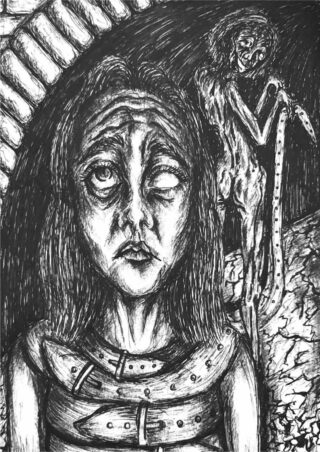 C. G. Jung hat mit ihm gewissermaßen das „Es“ von Sigmund Freud wieder personalisiert, um mit diesem Schatten-Ich all die fragwürdigen Seiten des Selbst zu erkunden. Auf den ersten Blick sieht der dunkle Schattenmensch in den Zeichnungen bedrohlich aus, auch bedrängt er das zeichnerische Ich, das hier ein Pendant zum lyrischen Ich sein mag: Es sind keine Selbstporträts, aber durchaus Wesenheiten des Selbst. Aber wer ist nun das eigentliche Ich? Beide Erscheinungen sind in einer Art Hassliebe aufeinander angewiesen, ergänzen sich hier, stoßen sich ab dort. In Ketten liegt die Seele. Ängste werden sichtbar, aber nicht nur auf der scheinbar realen Seite des Lebens, sondern auch auf dessen Schattenseite. Und immer wieder dringt noch die faszinierende und dunkle Seite von Paris ins Bild, wo die Bildserie entstanden ist. Die schönen Blumen des Bösen lassen grüßen. (Text: Günter Baumann)