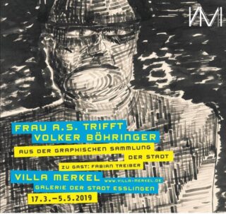 Frau A. S. trifft Volker Böhringer zeigt Arbeiten aus der Graphischen Sammlung der Stadt Esslingen. So sind neben dem anonym bezeichneten Porträt einer Frau von Emil Nolde eine Vielzahl von Arbeiten auf Papier, Skizzen und Entwürfen des 1961 verstorbenen Esslinger Künstlers Volker Böhringer zu sehen, die teils kaum je ausgestellt wurden. Von ihm wird auch ein krasses Bruststück eines Mannes geboten, angelegt als Tuschpinselzeichnung in Kreuzschraffur. Daneben ergänzen Zeichnungen und Malerei auf Papier etwa von Max Pechstein, Karl Schmidt-Rottluff, August Macke, Albrecht von Hancke, Otto Dix oder Dorothea Schulz die Auswahl.