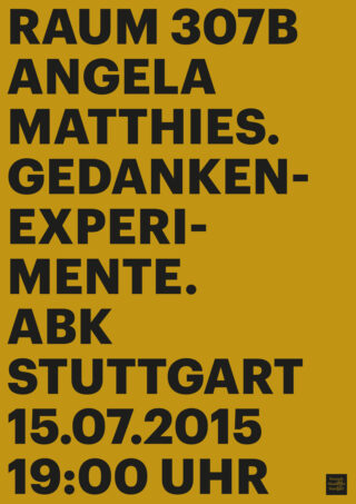 Der Vortrag „Gedankenexperimente“ von Angela Matthies mit anschließender Diskussion bildet den letzten Teil der von Akademie-Studierenden organisierten Veranstaltungsreihe im Atelier 307 B im Altbau der ABK Stuttgart.
