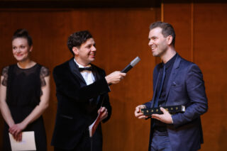 DER FAUST – in etwa der Oscar des Theaters – prämiert jährlich wegweisende Arbeiten an Bühnen in Deutschland. „Mit dem Deutschen Theaterpreis DER FAUST ehren wir herausragende Künstlerinnen und Künstler, die für die ästhetische Autonomie der Künste ebenso stehen wie für ihre gesellschaftliche Wirksamkeit“, so der Präsident des Deutschen Bühnenvereins Ulrich Khuon. Der diesjährige Festakt im Schauspiel Leipzig wurde live von 3sat ausgestrahlt. Ab Minute 17 sind ein Bericht über Sebastian Hannak und seine Dankesworte zu sehen. Zur Nominierung produzierte der MDR zudem einen Radiobericht über seine Arbeit. Neben Sebastian Hannak wurden dieses Jahr unter anderem Elfriede Jelinek und Christoph Marthaler mit dem FAUST ausgezeichnet.