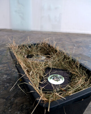 Trampelpfade (desirelines) werden abgelaufen, eingesammelt und verkocht. Die Geste des Abtragens knüpft an Durchlässigkeiten des Stadtraums und bildhauerisches Vokabular an.