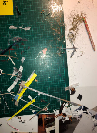 Schnibsel und Glitzer vom jährlichen Weihnachtskarten Gebastel begleiten mich bis ins neue Jahr.