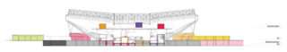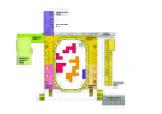Einst als Veranstaltungsmaschine von Roland Rainer konzipiert, sollen die technischen Möglichkeiten der Wiener Stadthalle nun als Ausstellungsmaschine genutzt und erweitert werden. Ziel dabei ist, die Abläufe innerhalb des Museums zu erleichtern und parallel passieren zu lassen. Über dem Hallenboden wird schachbrettartig ein doppelter Boden eingezogen, dessen Raster beliebig höhenverstellbar ist. Die Einstellungen sind flexibel gestaltbar und der Einsatz fixierter Wände ist nicht notwendig. Im Bereich unterhalb der Plattformen ermöglicht die direkte Zufahrt Anlieferungen von größeren Ausstellungsobjekten sowie allen für den Aufbau erforderlichen Utensilien. Ebenfalls besteht die Möglichkeit, den doppelten Boden auf das ursprüngliche Niveau herunterzufahren, um die Nutzung der Arena weiterhin erhalten zu können. Im Deckenbereich kann die Funktion des Schnürbodens weiterhin genutzt werden. Dieser dient ebenfalls zum Ausstellungsaufbau und agiert in Wechselwirkung mit dem doppelten Boden. Ein schneller und unkomplizierter Umbau innerhalb kurzer Intervalle ist somit möglich. Darüber hinaus erhält der Besucher Einblicke in die Abläufe des Museumsbetriebs.