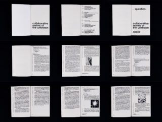 beschreibt, analysiert und hinterfragt, in fünf experimentellen Schritten, temporär manifestierte Arbeitsweisen, im Hinblick auf das Grafikdesign-Diplom. Der als Ausgangspunkt angenommene Leitsatz der Zusammenarbeit wird dabei zuerst in seine Einzelteile zerlegt, welche in darauffolgenden, analogen wie digitalen, Experimenten in neuen – unbekannten – Kooperationen weiterentwickelt werden.