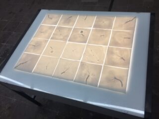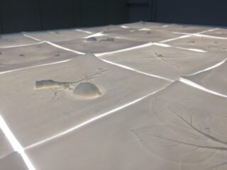 Die Arbeit „Du bereitest vor mir einen Tisch“ zeigt Blattabdrücke in Porzellan und Papier von alten Apfelsorten, welche zwischenzeitlich, größtenteils oder vollständig aus dem konventionellen Erwerbsanbau und den Supermarktregalen verschwunden sind. Die gesammelten Blätter stammen von einer Streuobstwiese, die vom Urgroßvater und Großvater angelegt wurde.