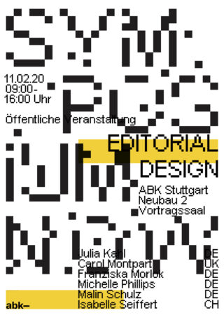 Dieses Plakat ist für das Symposium „Editorial Design Now“ an der Staatlichen Akademie der Bildenden Künste Stuttgart entstanden.