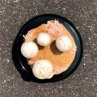 Die zetliche Veränderung wird durch die Aufbereitung einer selbstgezüchteten Pilztorte, bestehend aus der Basis, dem Substrat des Rosenseitlings und des Toppings, den weißen Champignons, dargestellt.