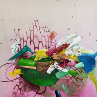 Mit meinen Bildern möchte ich meine eigenen Recyclinggedanken durch Malerei ermitteln.