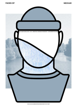 Der Neckar in Stuttgart, ein Fluss mit Identifikationsproblemen. Was ist der Neckar? Ist er Bundesschifffahrtstraße, Naherholungsgebiet oder Sportgerät. Fragt man den Stuttgarter, wird er antworten: „In erster Linie ist er dreckig!“ Der Neckar hat ein Problem in Stuttgart und durch dieses Problem habe ich ein Semesterprojekt. Faces of Neckar widmet sich den Gesichtern des Neckars und den Menschen die dort Zeit verbringen. Sei es als Kapitän, Wanderer oder Sportler. Geht der Film doch eher auf das Erscheinungsbild des Neckars ein, so zeigt das Filmplakat beide Seiten des Projektes und nimmt die markante Büste einer Person auf. Dadurch wird das Umfeld des Neckars personalisiert und vermenschlicht. Das Plakat zielt darauf ab, dass der Fluss als eigenständiges Wesen wahrgenommen werden soll. Der beworbene Animationsfilm zeigt dann die Wesenszüge der Kreatur Neckar vom Hafen bis nach Mühlhausen.