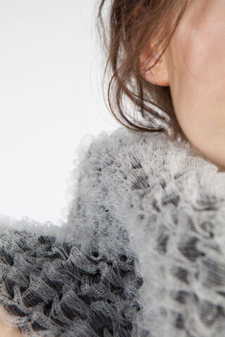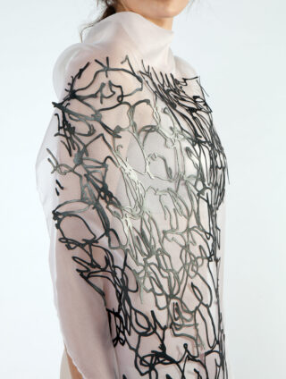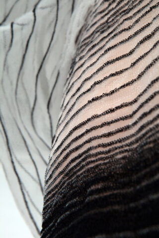 Aus der Recherche sind Modetextilien entstanden, die sich mit den Farbigkeiten des Lichts, Silhouetten und Schattenformen befassen. Die verwendeten Materialien unterscheiden sich von glänzender Seide bis stark absorbierender Wolle, von stark transparent bis blickdicht. Die Farbigkeit geht über zarte Verläufe, irisierende Momente bis zur vollkommenen Dunkelheit. Umgesetzt wurde das Projekt in Geweben, Gestricken, Lasercuts und experimentellen Techniken.