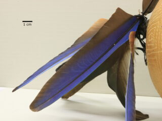 Da Federn zum größten Teil aus dem Strukturprotein Keratin bestehen, ist bei einer Reinigung mit Lösemitteln ein Quellprozess nicht auszuschließen. Demzufolge muss im Voraus ermittelt werden, in welchem Zustand sich die Federn befinden. Die Federn aus Südamerika konnten in diesem Fall mit Ethanol 70%ig in Wasser gereinigt werden. Dadurch sind die Federn vor erneuten Schimmelbefall geschützt, ihre besondere Farbigkeit tritt wieder hervor und die Hakenstrahlen haben sich wieder verbunden.