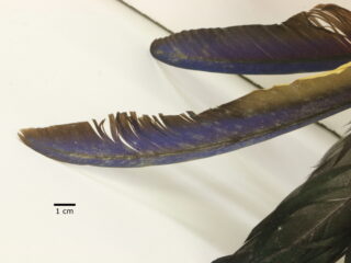 Die Federn aus Südamerika sind stark verschmutzt. Der Schmutz besteht aus Staub und Schimmel. Durch die Fremdpartikel trennen sich die einzelnen Bogen- und Hakenstrahlen der Federfahne voneinander. Bei der Bearbeitung von Federn ist zu beachten, dass diese sehr empfindlich sind. Sie können durch chemische und mechanische Einflüsse, Licht und Schädlingsbefälle irreparabel geschädigt werden. Wie also wurde hier vorgegangen?