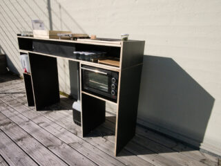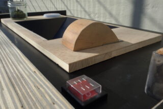 Die Auseinandersetzung mit traditioneller Papierherstellung bildete die Inspiration für diese Maschine, welche in einem Ablauf von Arbeitsschritten Furikake produziert, ein japanisches Reisgewürz, welches klassischerweise aus Nori-Algen hergestellt wird. Als regionale Alternative kommt hier Spinat zum Einsatz, der die Grundlage für die Rohmasse bildet. Diese wird zu einer dünnen Platte gegossen und anschließend gepresst und geröstet. Die fertigen Gewürzplatten werden dann vom Sieb geschabt und über einen Trichter direkt in Gläschen abgefüllt. Die hauchdünnen Flocken eignen sich mit ihrem typischen Umami-Geschmack perfekt als Topping für Suppen und Reisgerichte.