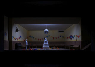 Wir befinden uns in einem Party Keller, der sich in einem Plattenbau, in einem Gasthaus oder in einem Gemeindehaus befinden kann. Die Verortung unter der Erde macht sich erst auf den zweiten Blick bemerkbar und gibt ein bedrückendes Gefühl.