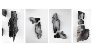 Kräfte und Spannungen im Holz, sowie die Bearbeitung dieser artikulieren sich in den Oberflächen von Rissen, Brüchen und Splittern. Die freigesetzte Energie des Holzes nimmt Einfluss auf das Umfeld und überträgt diese auf Papier und Keramik.