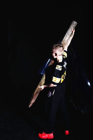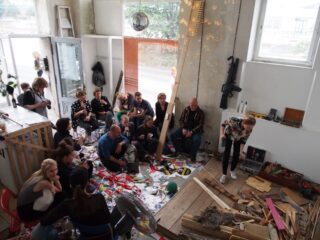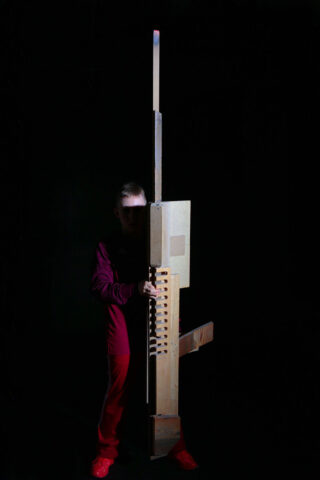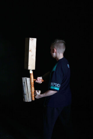 Auf einer lärmenden Baustelle werden aggressiv anmutende Objekte handgefertigt. Mit ihnen ließe sich hart „kloppen“, ihr Zweck ist deutliche, präzise Show von Stärke, Form und Ausdruckskraft. Sie dienen der Demonstration von Wille und Wehrhaftigkeit. Der Bauplatz dieser Instrumente ist die Kulisse zu einer Schrift (Text by Antonia Christl), die der Schlüssel zur Hintergrundaktion ist. Die Worte laufen im Loop als LEDLaufschrift.