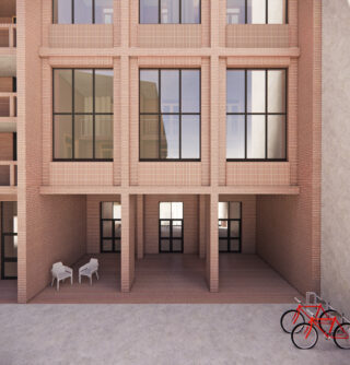 Der Knick im Umriss des Bausteins wurde zur Grundlage für die Entwicklung der Idee der Kreuzung als Grundprinzip der Gestaltung. Der Grundriss zeichnet sich durch die Überschneidung zweier Parzellen aus, wodurch an der Kreuzung ein Raum von besonderer Qualität entsteht. Die Idee der Kreuzung wird hier auf verschiedenen Ebenen dargestellt, was sich sowohl im Konzept eines Systems tragender Elemente als auch im Verständnis eines öffentlichen Raums widerspiegelt, wo die Wege unterschiedlicher Menschen sich kreuzen. Das Gemeinschaftliche Wohnmodell ist gekennzeichnet durch große zweistockige Gemeinschaftsküchen, die immer den Bewohner von drei Maisonetten-Wohnungen bedienen und vereinbaren. Der industrielle Geist des Viertels spiegelt sich in der Materialwahl und dem plastischen Ausdruck der Fassade wider.