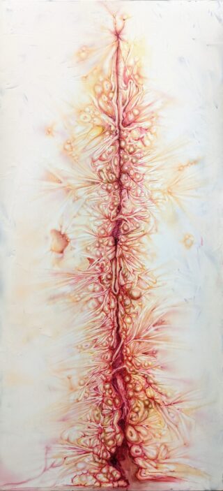 Das Bild entstand zu einer Zeit in der ich im privaten Umfeld viel mit selbstverletzendem Verhalten konfrontiert wurde . Auch interessierte ich mich stark für wunden und Narben und konnte bei einem Freund fast täglich den Heilungsprozess einer großen Operationswunde der Schultergegend beobachten . Dieses Interesse und die andere oben genannte Thematik inspirierten mich zu dieser Acrylmalerei.