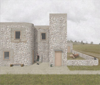 Sie findet Platz in der freien Landschaft auf der Schwäbischen Alb, fern ab von urbanen Zentren und in enger Verflechtung mit der sie umgebenden Landschaft, welche von flachen Wiesen und Weiden geprägt ist. Hier entsteht der Lebensraum einer Kommune von etwa einhundert Menschen, welche sich von der Konsum- und Leistungsgesellschaft abgewendet hat und im Wandhaus ihren Rückzugsort findet. Sie lebt in enger Gemeinschaft, teilt Wohnraum und Alltag und betreibt Landwirtschaft zur Selbstversorgung. Auch das Bauen der Struktur findet mit low-tech-Möglichkeiten vor Ort statt. Das Baumaterial Kalkbruchstein findet sich direkt auf den umliegenden Feldern und wird in unbearbeitetem Zustand aufgeschichtet. Wie früher bilden sie beispielsweise niedrige Begrenzungsmauern für Weiden oder Gärten; sie wachsen aber in Verbindung mit Beton auch zu mehrgeschossigen Wohngebäuden heran.