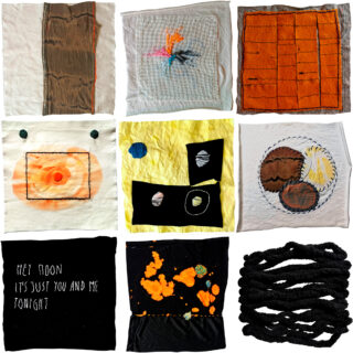 Meine Arbeit trägt den Titel ‚one textile at a time‘. Ich verarbeite Tage und auch einzelne Ereignisse, indem ich meine Gedanken dazu formalisiere, sie abstrakt in Formen und Farben übersetze und die erlebten Verhältnisse und Bezüge stofflich ausdrücke. Die daraus entstehenden, einzelnen Stoffcollagen ergeben gesammelt und gemeinsam ein textiles Tagebuch.