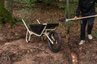 Ohne Trails ist das Mountainbiken undenkbar. Die Erbauer und Pfleger dieser Wege sind die unsichtbaren Helden hinter den Kulissen, die den Ausbau und die Instandhaltung gewährleisten. Aber wie gelangen Werkzeuge, Materialien und Ausrüstung effizient an die Baustellen im Wald? Die Arbeit findet oft zwischen verwurzelten Passagen, schlammigen Wegen und im Dickicht statt. Eine Schubkarre ist dabei unverzichtbar, doch ihr Transport mit dem Fahrrad ist nahezu unmöglich.