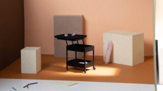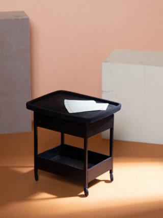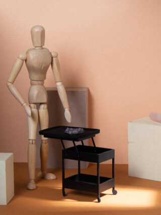 Ein Assistent für den Schreibtisch, in dem viel benutze Gegenstände verstaut werden können. Das große Tablett oben auf dem Wagen lässt sich auf elegante Weise zurück klappen und gibt Stauraum frei. Aufgrund des zurückhaltenden Designs und der Ähnlichkeit zu klassischen Wohnmöbeln, fügt er sich (vor Allem zu Home Office Zeiten) perfekt in die Umgebung des Schreibtischs ein, ohne sich aufzudrängen.