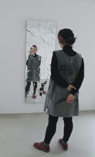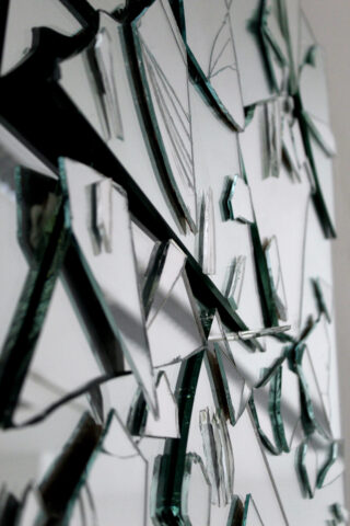 In der Ausstellung „Optimize your life. Be the best version of yourself“ wurden Arbeiten von Studierenden aus der Klasse von Prof. Susanne Windelen gezeigt, die sich mit dem Anspruch der Optimierung in unserer Gesellschaft auseinandersetzten. In dieser Arbeit wurden mehrere Spiegeln zerschlagen, so dass der Betrachter sich nicht mehr in seiner Ganzheit betrachten kann.