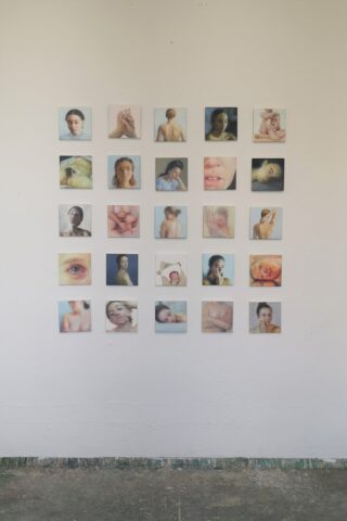 Zu sehen ist eine Auswahl an Arbeiten, die Teil meiner Bachelorarbeit, einer 25-teiligen Malerei-Serie mit dem Titel »Sensitive Content« sind. Das quadratische Bildformat ist angelehnt an die Social Media Plattform Instagram. Die Motive sind sensible Inhalte, die nicht unmittelbar dem wahrnehmenden Auge zugänglich gemacht werden sollen, sondern durch das bildnerisch-malerische Phänomen der Unschärfe einerseits geschützt werden und andererseits die Neugier des Betrachters wecken sollen.