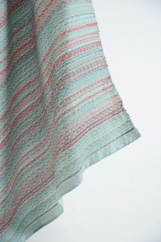 Ein bedeutender Unterschied zwischen analogen und virtuellen Realitäten stellt die jeweilige sensuelle Wahrnehmung dar. Im Gegensatz zu unserer analogen Umgebung können wir die digitale Welt nur mit wenigen Sinnen und auf andere Art erschließen. Insbesondere die Wahrnehmung von Textilien bieten eine ausgeprägte taktile Erfahrung. Lässt sich die Erfahrbarkeit von Digitalem durch Textilien also multisensuell erweitern? Das Projekt zeigt die Fusion von der physischen Welt und der digitalen, welche sich auf dem Textil begegnen und miteinander verschmelzen. Durch das Zusammenspiel der Sinne entsteht ein vielschichtiger Herstellungsprozess, der in mehreren Schritten mit digitalen und analogen Ebenen interagiert. Dieser macht es möglich Geräusche der Textilproduktion zu sehen, Farben zu ertasten und einen Stoff anhand von Klängen zu weben.