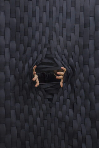 »No. 3/3 – The virtual Fold« deals with the question of how the design of real textile surfaces can be inspired when virtual textile phenomena from the CAD software Blender are simulated into our real world? In this part of the project the fold is communicated by a cut.