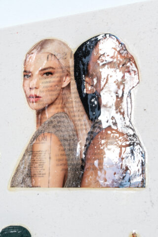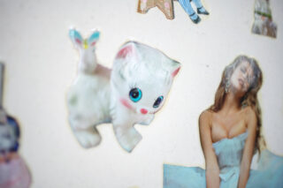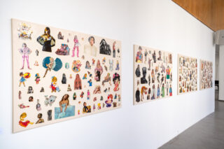 The work consists of four cotton canvases. These are pre-treated with an impregnation only, so that the fabric remains recognisable in its natural structure. The panels are all the same size and are 1 m high and 1,40 m wide. Female illustrations were taken from artists‘ books, magazines, newspapers, brochures and children’s colouring books and typologically assigned to four groups: Teen, Model, Muse and Playmate.