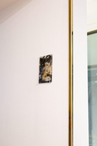 Auf der Glasplatte ist eine analoge Fotografie abgezogen. Sie ist schon gealtert, sieht man doch gelbe Flecken. Man könnte sagen, dass dieses Stück ein Fund vom Flohmarkt wäre. Das Bild zeigt Min Barks Skulptur »How I was made«. Min Bark kann sich an das Leben in ihre Heimat Korea nicht erinneren, an ihre Eltern schon gar nicht. Ihre Tonskulptur zeigt einen Zeugunsakt, ohne dass Gesichter des Paares zu sehen sind.