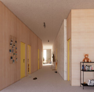 … Zwischen den Wandscheiben wird gewohnt. Radikale Klarheit und Rhythmus bestimmen die Fassade und die inneren Strukturen.