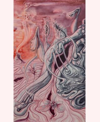Diese Malerei entstand aus dem Interesse an carnivorischen Pflanzen heraus in Verbindung mit sexuellen Aspekten. Allein schon der Name der Venusfliegenfalle lässt Rückschlüsse ziehen zur römischen Gottheit der Liebe, des Verlangens und der Schönheit. Ich wollte eine botanische Venus schaffen mit geschwungenen, sinnlichen Formen , als lockender und doch gefährlicher Organismus, der einen einmal in seinen Bann gezogen, vielleicht nie wieder gehen lässt.