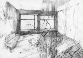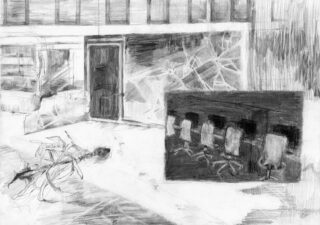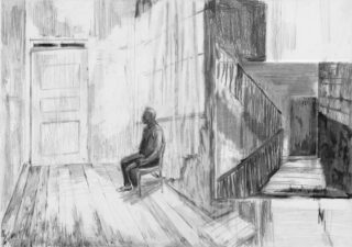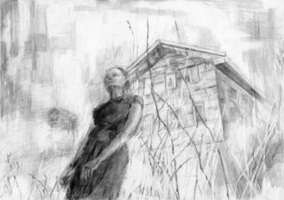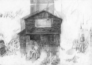 Technik: Bleistift, Graphit, Kohle auf Papier.