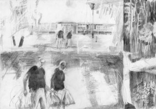 Es sind Erinnerungen einer fiktiven Person, in der Gestalten und verwahrloste Orte auftauchen, teils genau gezeichnet, teils verzerrt, teils in abstrakte Flächen ausgelöst. Die dargestellten Menschen erscheinen gesichts- und persönlichkeitslos, und doch weisen sie individuelle Schicksale auf.