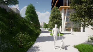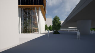 Das Zentrum für ökologische Stadtentwicklung (ZÖS) entsteht im Rahmen des B14-Masterplans von ASP, eingebettet in den Aktivpark am Österreichischen Platz. Der neungeschossige Holzhybridbau vereint spezialisierte Teile des Stadtplanungs- und Hochbauamts mit intensivem Bürgerdiskurs und wird zur Anlaufstelle für eine nachhaltige Stadtentwicklung. Die adaptive Solarfassade in Kombination mit einem extensiv begrünten Innenraum sorgen für ein ökologisches Gleichgewicht aus Energieproduktion und Aufenthaltsqualität.